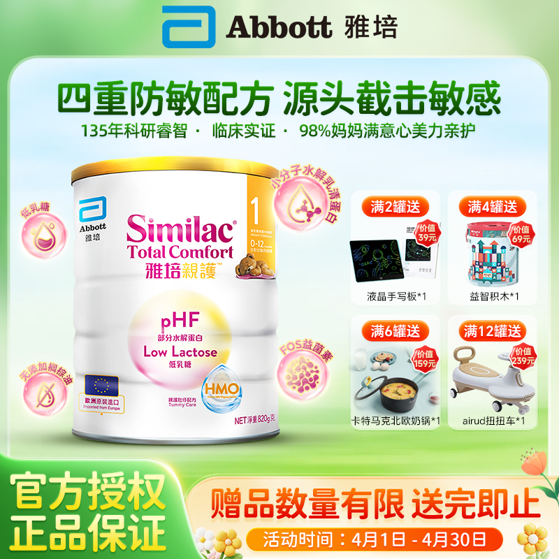 【满赠】雅培港版心美力Similac亲护部分水解蛋白配方粉1段(0-12个月)820g